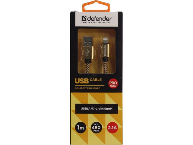 Defender 87806 Кабель USB 2.0 AM-- Lightning 1м, Gold