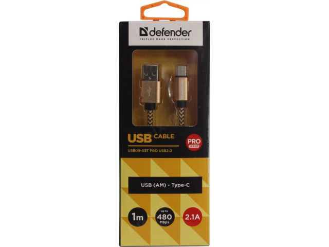 Defender 87812 Кабель USB2.0 AM-- USB-C M 1м, Gold