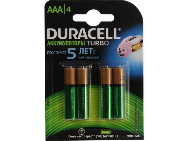 Аккумулятор Duracell TURBO DX2400-4 (1.2V, 900mAh) NiMh, Size AAA  уп. 4 шт