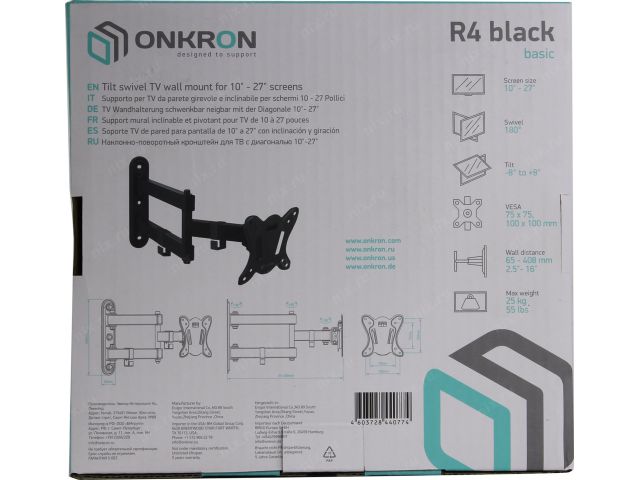 ONKRON R4 (Basic) Black Универсальное поворотное крепление (VESA75/100, 10-27 , 25кг)