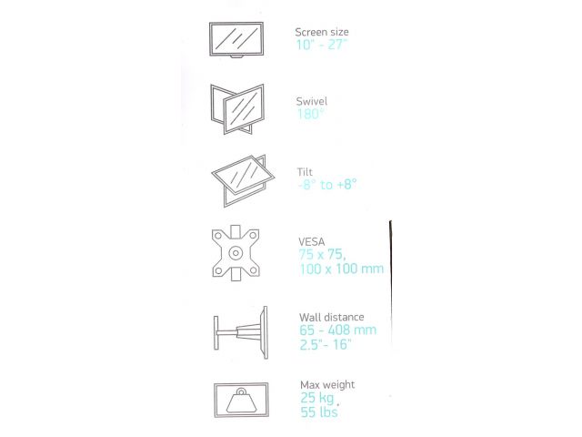 Настенное крепление для телевизоров с диагональю от 10 до 27 дюймов и весом не более 25 кг