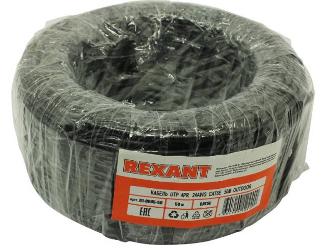 Кабель UTP 4 пары кат.5e бухта 50м Rexant 01-0045-50  для внешней прокладки