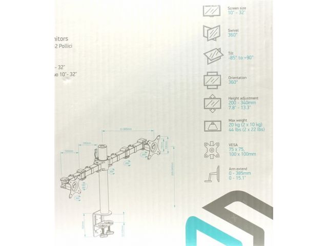Настольный держатель для эргономичной регулировки положения 2 дисплеев с диагональю от 10 до 32 дюймов