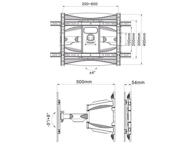 Крепление монитора или телевизора к стенеVESA 200 x 100, VESA 200 x 200, VESA 300 x 200, VESA 300 x 300, VESA 400 x 300, VESA 400 x 400, VESA 600 x 400