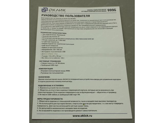 OKLICK Optical Mouse 999G  Black  (RTL) USB 7btn+Roll 1102293