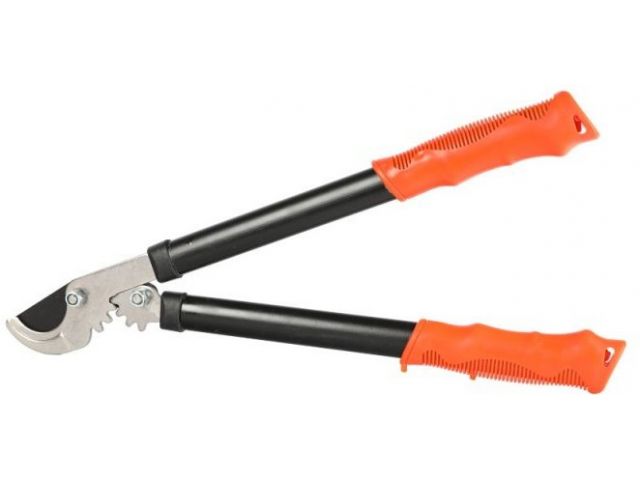 Предназначен для работы с побегами, толстыми стеблями и ветвями деревьев. Зубчатый рычажный механизм повышает передачу усилий и увеличивает режущую способность. Верхнее лезвие из стали SK-5 с тефлоновым (PTFE) покрытием. Нижнее лезвие из стали S50С с хромированным покрытием.