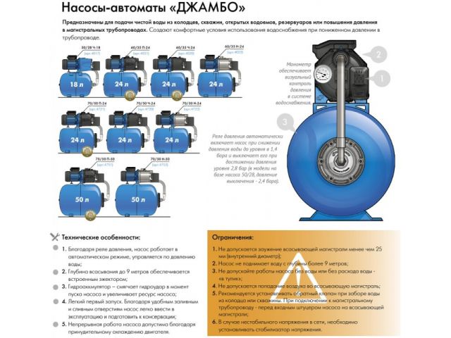 4722 Садовый насос поверхностный Джилекс Джамбо 70/50 Н-24 1100Вт 4200л/час (в компл.:Реле давления РДМ-5,