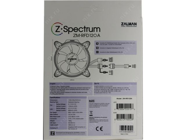 ZALMAN ZM-RFD120A Fan for m/tower (3пин, 120x124x25мм, 25.6дБ, 800-1500об/мин)