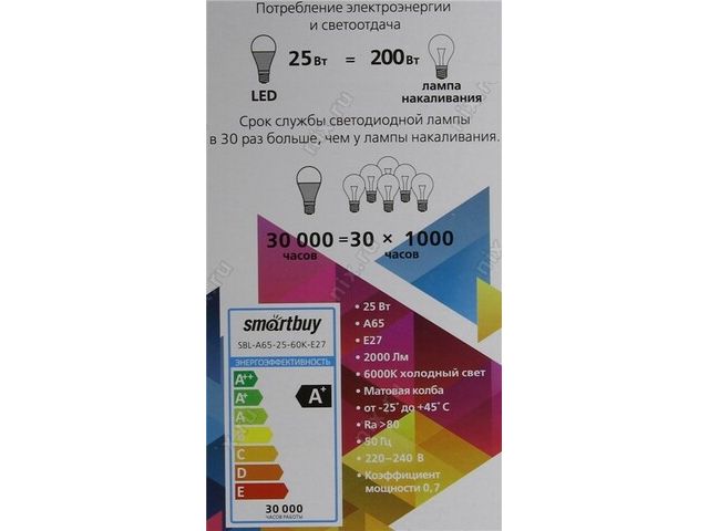 | Лампа светодиодная SmartBuy SBL-A65-25-60K-E27 |