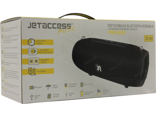 Колонка JETACCESS PBS-200 Black (2x10W, USB, Bluetooth, microSD, FM, PowerBank, Li-Ion)