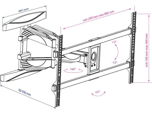 Крепление монитора или телевизора к стенеVESA 200 x 100, VESA 200 x 200, VESA 300 x 200, VESA 300 x 300, VESA 400 x 200, VESA 400 x 300, VESA 400 x 400, VESA 500 x 400, VESA 600 x 400, VESA 700 x 400, VESA 800 x 400,