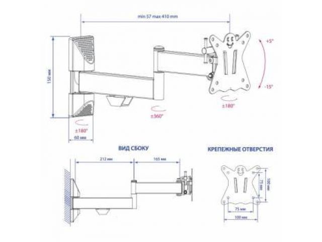 Крепление монитора или телевизора к стенеVESA 75 x 75, VESA 100 x 100
