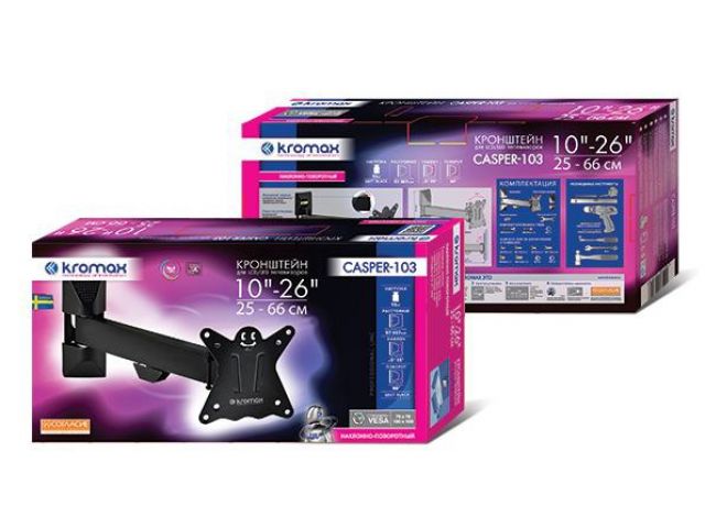 Kromax CASPER-103 Black Универсальное поворотное крепление (VESA75/100, 25кг)