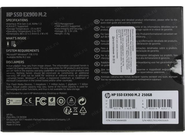 SSD 250 Gb M.2 2280 M HP EX900  2YY43AA 3D TLC