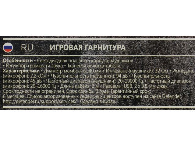 Наушники с микрофоном Defender Warhead G-370 (шнур 2м, с регулятором громкости) 64037
