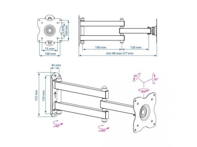 Крепление монитора или телевизора к стенеVESA 75 x 75, VESA 100 x 100