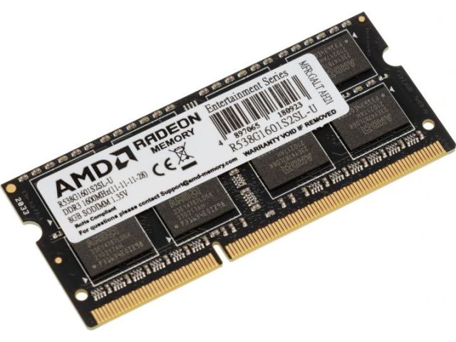AMD 8GB AMD Radeon™ DDR3L 1600 SO DIMM R5 Entertainment Series Black R538G1601S2SL-U Non-ECC, CL11, 1.35V, Retail