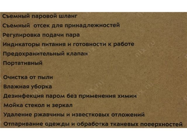 | Компактное хранение | Да. Под пароочистителем расположен отсек для хранения насадок. |