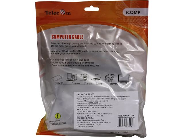 • Telecom TA575-1.8м Кабель-переходник VGA(M)+audio+USB -- HDMI (M)