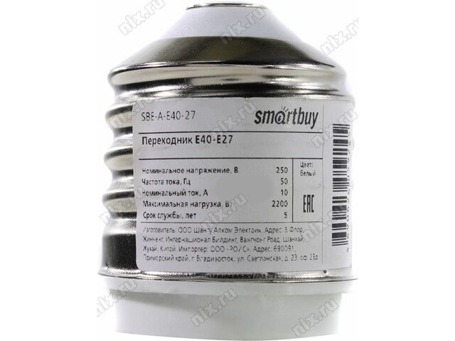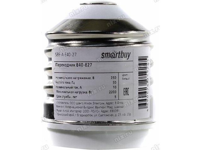 Smartbuy SBE-A-E40-27 Переходник для ламп с цоколем E27 для установки в светильник E40
