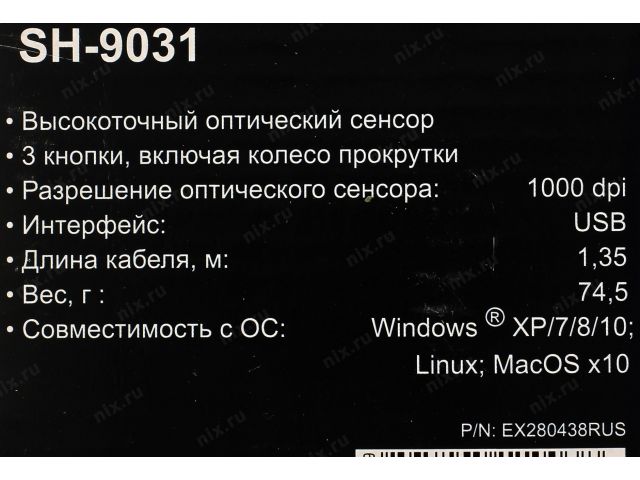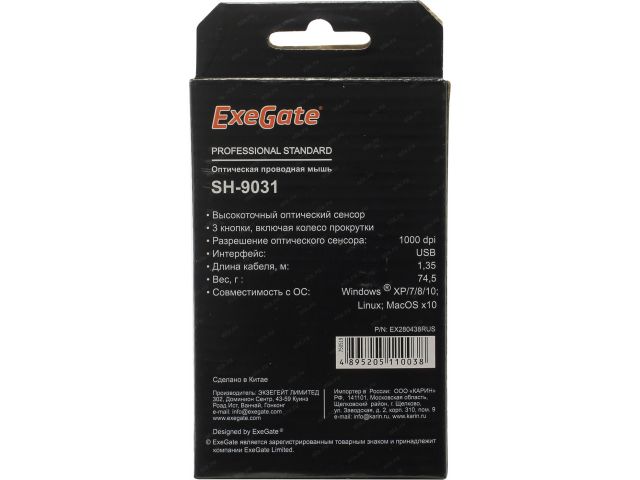 Проводная Мышь ExeGate Professional Standard SH-9031 (USB 2.0, 3btn, 1000 dpi)