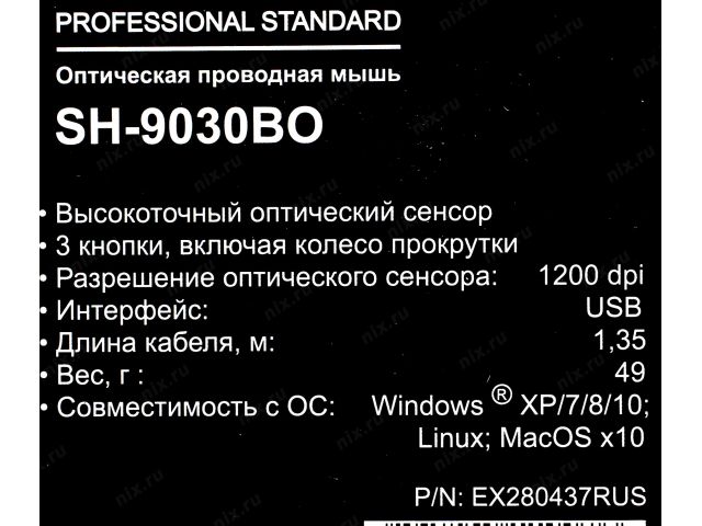 Проводная Мышь ExeGate Professional Standard SH-9030BO (USB 2.0, 3btn, 1200 dpi)