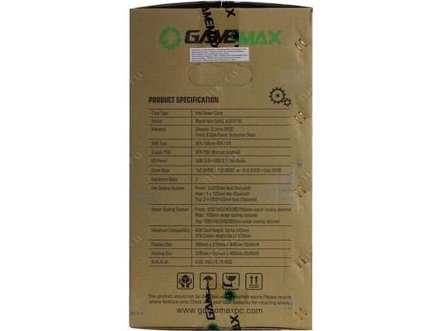 | Корпус Miditower Gamemax Black Hole ATX без БП с окном |
