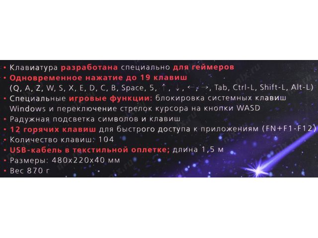 Клавиатура Smartbuy SBK-309G-K  USB  104КЛ, подсветка клавиш
