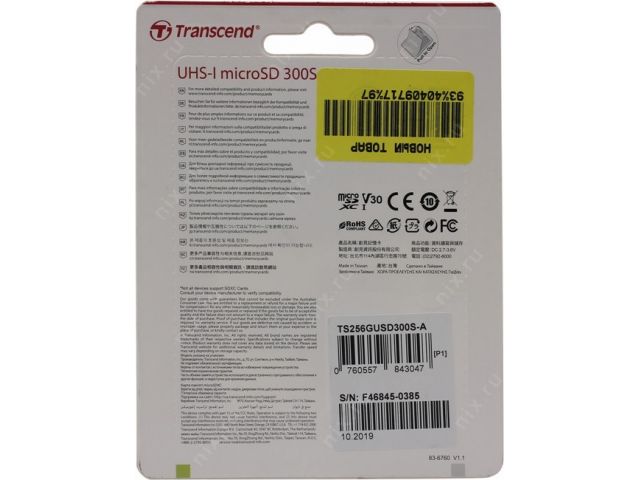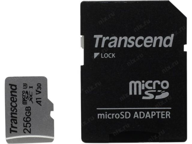 Карта памяти Transcend 300S TS256GUSD300S-A microSDXC A1, V30, UHS-I Class 3 (U3), Class 10 256 ГБ +microSD- SD адаптер