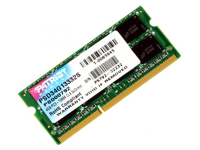 • Patriot PSD34G13332S DDR3 SODIMM 4Gb  PC3-10600  CL9 (for NoteBook)