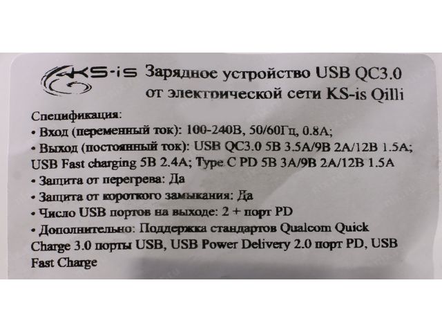 Зарядка USB-устройств от 220В KS-is KS-380 2 x USB Type A мама , USB Type C мама (27 Вт)