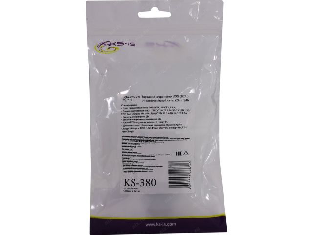 KS-is KS-380 Зарядное устройство USB (Вых. DC5V/9V/12V, 27W, 2xUSB, USB-C, быстрая зарядка)