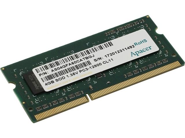 Apacer AS04GFA60CATBGJ DDR3 SODIMM 4Gb PC3-12800  CL11 (for NoteBook)