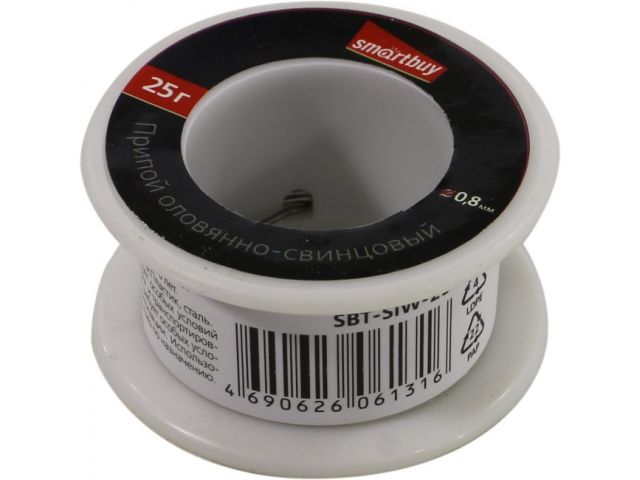 Припой с канифолью - широко применяется в пайке для соединения деталей прочным и надёжным швом. Припой Smartbuy - это проволока толщиной 0.8 мм, состоящая из сплава олова (60%) и свинца (40%).
