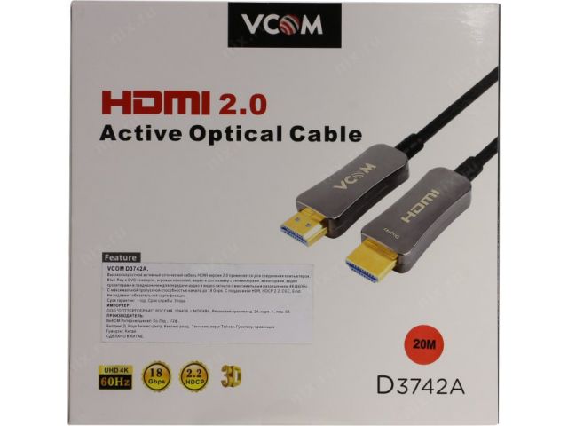Оптический активный кабель HDMI - HDMI VCOM D3742A-20м 20 м.