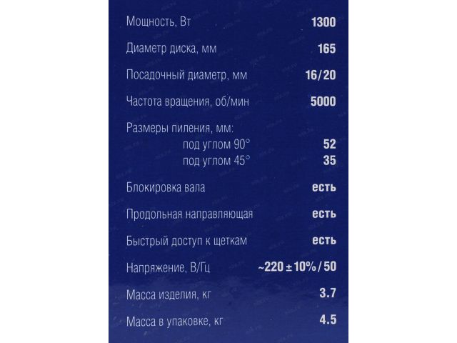 Глубина пропила52 мм (под углом 90°), 35 мм (под углом 45°)