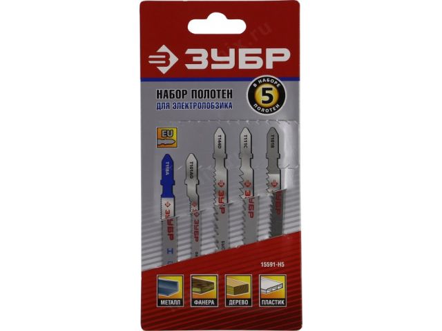 ЗУБР Мастер 15591-H5 Набор пилок для лобзика (дерево/пластик/металл, 5 шт)
