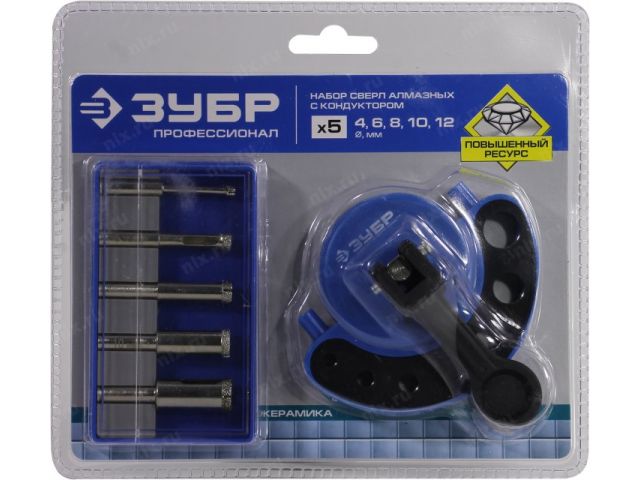 ЗУБР Профессионал 29851-H6 Набор свёрл с кондуктором (алмазные, 6 предметов)