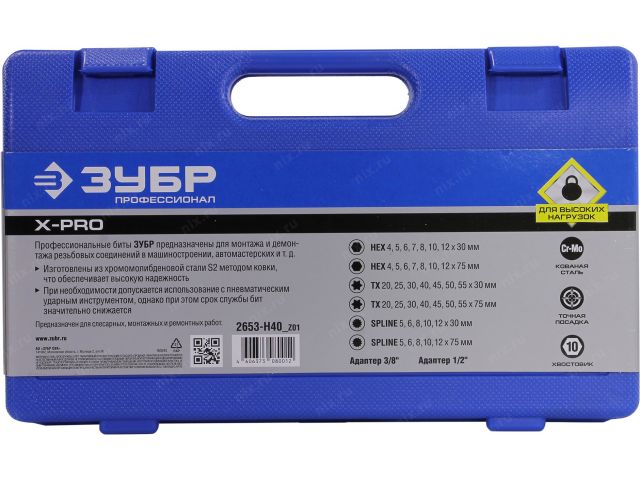 Профессиональные биты Зубр предназначены для монтажа и демонтажа резьбовых соединений в машиностроении, автомастерских и т. д. Биты и головки применяются в качестве сменных насадок при работе с использованием трещоток, воротков и механических ударных отверток. Биты изготовлены из хромомолибденовой стали S2 методом ковки, что обеспечивает высокую надежность. При работе с ударным пневмоинструментом срок службы значительно снижается.