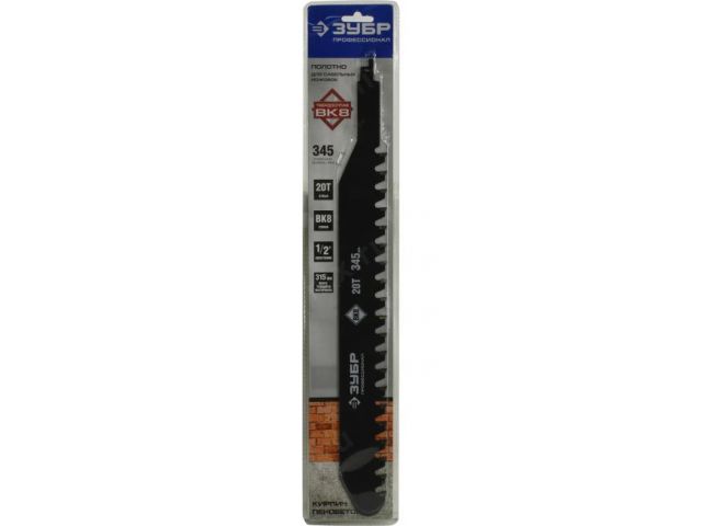 Полотна ЗУБР для сабельных электроножовок изготовлены из качественной высокоуглеродистой стали с использованием высокоточных технологий заточки твердосплавных зубьев. Полотно применяется на сабельной электроножовке МОЩНОСТЬЮ НЕ МЕНЕЕ 1000Вт при резке лёгкого пенобетона, строительного кирпича и гипсокартонных плит.