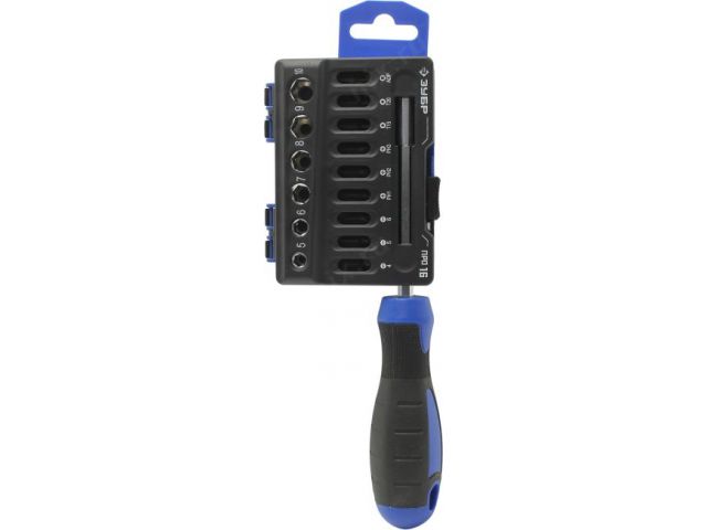 Комплект поставкиОтветка с битодержателем Биты 25 мм, SLOT SL4, SL5, SL6 Биты 25 мм Phillips PH1, PH2, PH3 Биты 25 мм TORX T15, T20 Торцевые головки 5, 6, 7, 8, 9, 10 Адаптер для торцевых головок