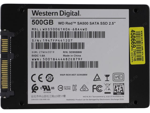 | Накопитель твердотельный WD Твердотельный накопитель SSD WD Red™ SA500 NAS 3D NAND WDS500G1R0A 500ГБ 2,5 SATA-III (TLC) |