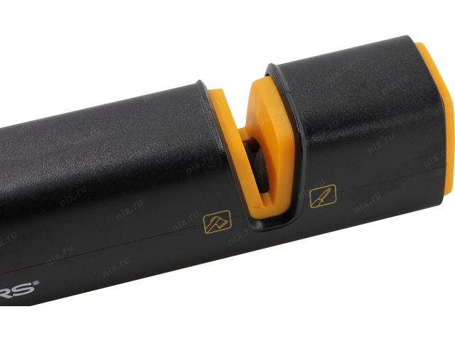 Fiskars Xsharp™ это бесценное дополнение к любому набору инструментов для сада. Ее простой в использовании механизм и жесткий керамический диск с канавками обеспечивают оптимальную режущую кромку и непревзойденную производительность для топоров и ножей.Fiskars Xsharp ™ обеспечит бесперебойную работу благодаря подкладке против скольжения и простой сборке-разборке для быстрой очистки и обслуживания.ДВЕ функции в ОДНОЙ точилке: керамические шлифовальные круги имеют чётко обозначенные пазы как для топоров, так и для ножей. Переключение между режимами заточки производится нажатием на торцы точилки.