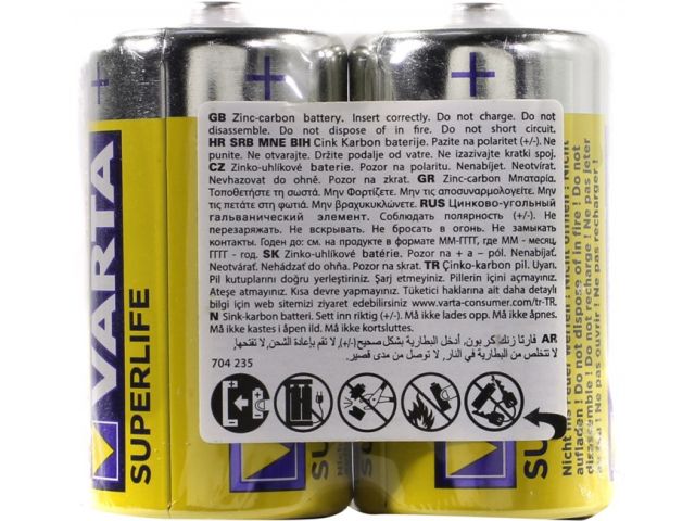 • VARTA SUPERLIFE, Heavy Duty  Size C , 1.5V, (Zinc-Carbon)  уп. 2 шт