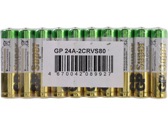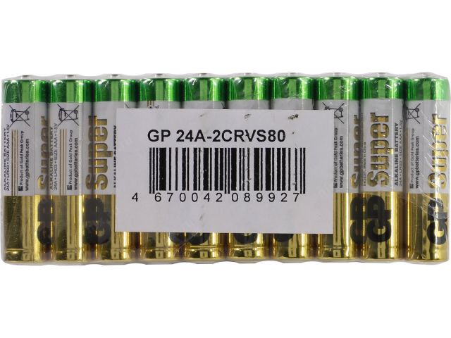 • GP Super 24A-2CRVS80/2CRSWC80 (LR03) Size AAA, 1.5V, щелочной (alkaline)  уп. 80 шт
