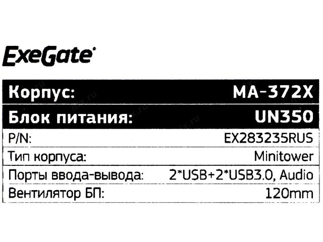 | Корпус Minitower ExeGate MA-372X MicroATX 350 Вт |