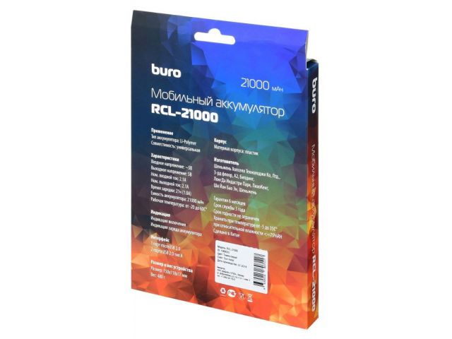 Внешний аккумулятор Buro RCL-21000 (2xUSB 2.1А, 21000mAh, Li-Pol)