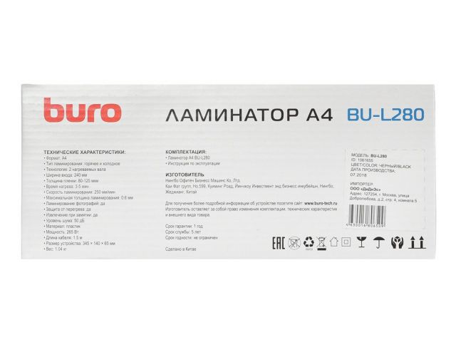 Ламинатор Buro BU-L280 (A4, 80-125 мкм, 25см/мин)