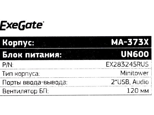 | Корпус Minitower ExeGate MA-373X MicroATX 600 Вт |