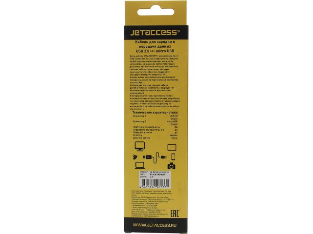 JETACCESS JA-DC28 2м Black Кабель USB 2.0 AM-- съёмный магнитный USB micro-B 2м